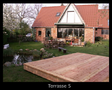 Wir haben uns inzwischen auf Stegbauten und Pfahlrammarbeiten spezialiert. Mit diesen sind wir terminlich komplett ausgelastet und können daher keine Terrassenbauten mehr anbieten.